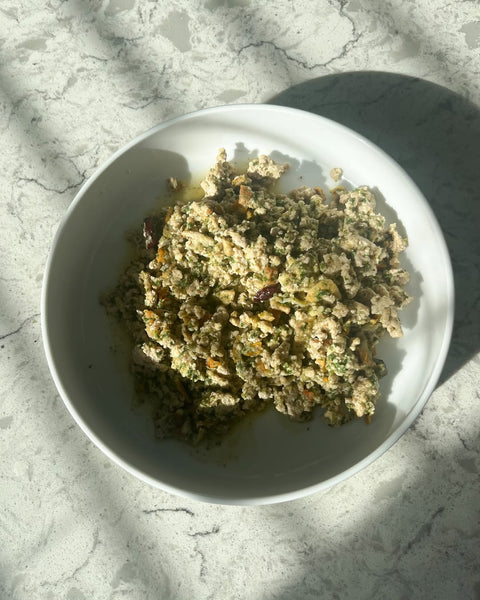 Enhance our original or super green PetMix formulas with your choice of protein: ground turkey, lamb, beef, or our freeze-dried chicken topper. This allows you to create a personalized meal tailored to your dog’s specific dietary requirements.